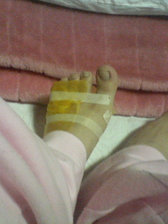●んで今。風呂上がりに消毒です。写真の足になりました。