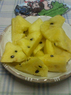 ●本日今年初のスイカを食べました(ノ・ω・)黄色スイカ~甘くて美味しかったです