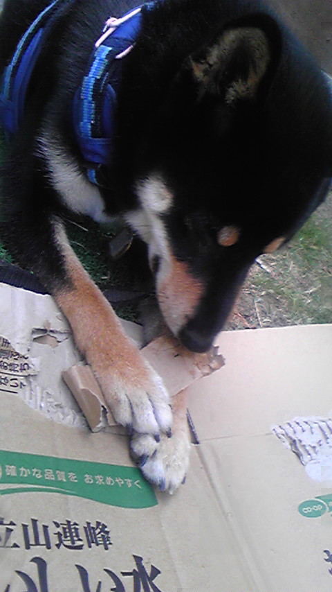 めちょ宅でショコラちゃんが段ボールの中に!ちなみにうちのこに段ボールあげると添付のような始末になります( ̄▽ ̄;)