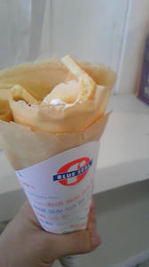 で道行く人がクレープ食べてるの見ておいしそうだね~たべよっか★でブルーシールのクレープぱくり(*´▽`*)v