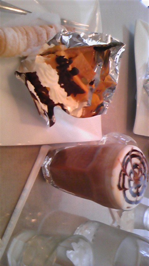 カボチャのプリンタルト美味かった(´ω`)カスタードコロネ?コルネ?もウマウマ(*´艸`*)お茶だけでお腹一杯ε=(>ε<*)