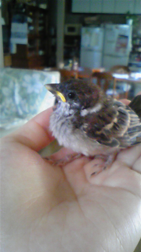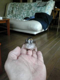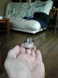 でしょ~!!可愛いでしょ!!指に乗っけて餌やるの!!んでお腹一杯になると指の上でもうつらうつらするの!!か~わ~い~(*´▽`*)