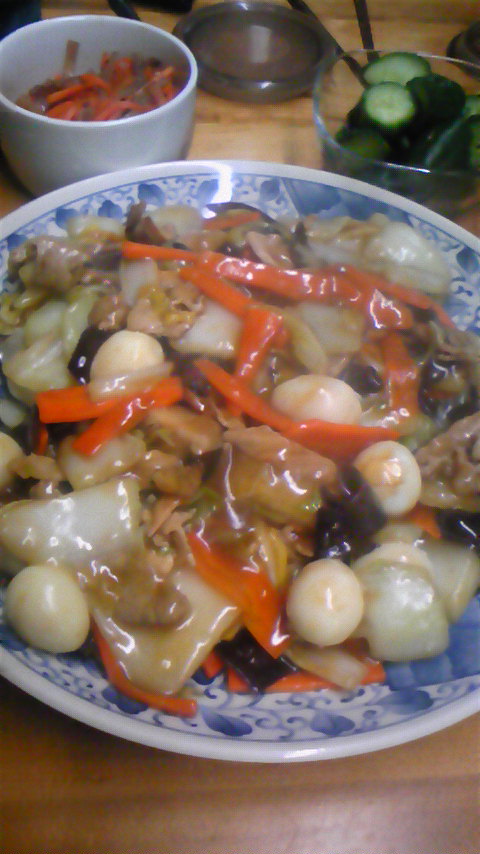 今日の夕飯は八宝菜でし。八宝菜といったら、にんたまのヒエタハッポウサイさんが出てきましたので…