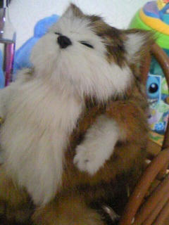 箱根温泉土産に猫の置物?ぬいぐるみ貰った~一目みてあたしそっくり、てかまさにそうじゃない?と思って買ってきたみたい。(ロッキングチェアーで)寝てるとこが似てるらしい。