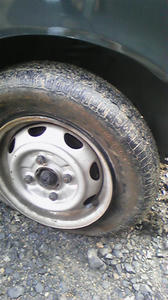 写真はあたしの車のパンクタイヤ。昨日より更にべっこべこ